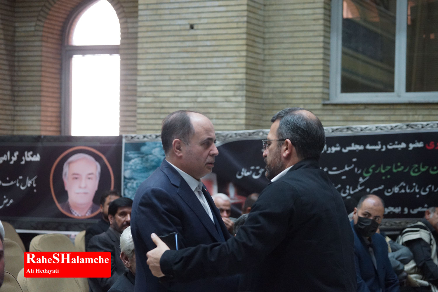 به گزارش راه شلمچه، مراسم ختم مرحوم عبدالله جباری پدر رضا جباری نماینده مردم مسجد سلیمان در مجلس شورای اسلامی با حضور محمدباقر قالیباف رئیس مجلس، محمدرضا ظفرقندی وزیر بهداشت و درمان آموزش پزشکی، محسن پاک نژاد وزیر نفت، احمد میدری وزیر تعاون و کار و اجتماعی، عباس علی آبادی وزیر نیرو، غلامرضا نوری قزلجه وزیر جهاد و کشاورزی، سیدرضا صالحی امیری وزیر گردشگری و میراث فرهنگی، محسن رضایی، هادی طحاننظیف سخنگوی شورای نگهبان، سیدعماد حسینی رئیس هیئت مدیره نفت خزر، سیدحمید پورمحمدی رئیس سازمان برنامه و بودجه کشور، یوسف قربانی معاون هماهنگکننده نیروی زمینی ارتش، جمعی از نمایندگان مردم در خانه ملت و ... در مسجد نور میدان فاطمی تهران برگزار شد.